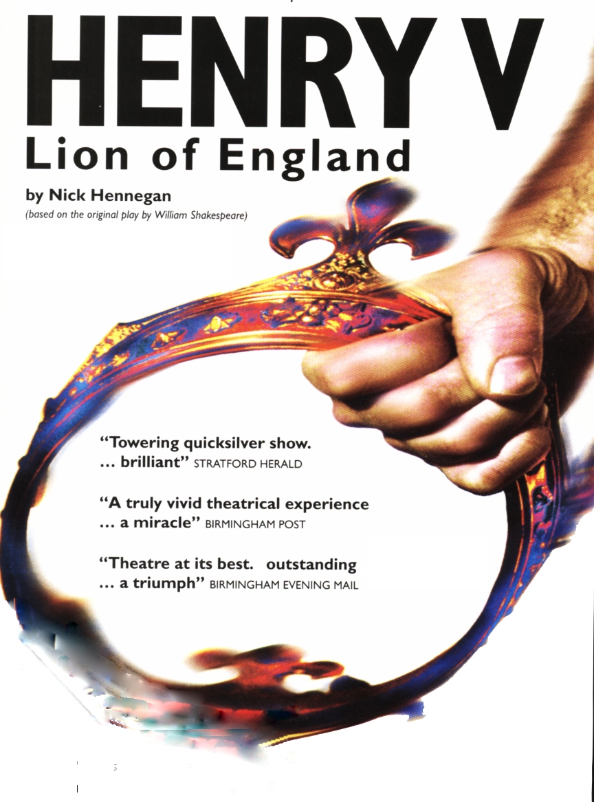 In 1992 in Birmingham, I wrote and directed a one-man version of Shakespeare’s classic, Henry V. Called ‘HENRY V - LION OF ENGLAND’ It was picked up after a showing at the Midlands Arts Centre (mac) in Birmingham by Starward Ltd - then mangers of Jasper Carrott and Phil Cool - and taken to the Edinburgh Festival, where it proved to be a critical and audience hit. Since then it has steadily travelled around the UK, Ireland, Europe and the USA, although we neglected it a bit to build a fringe theatre scene in Birmingham having established the Maverick Theatre Company.